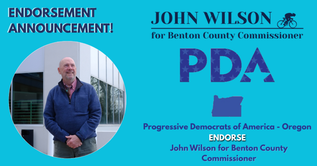 John Wilson is proud to announce the Progressive Democrats of America – Oregon have endorsed him for Benton County Commissioner in the May, 19th Primary.